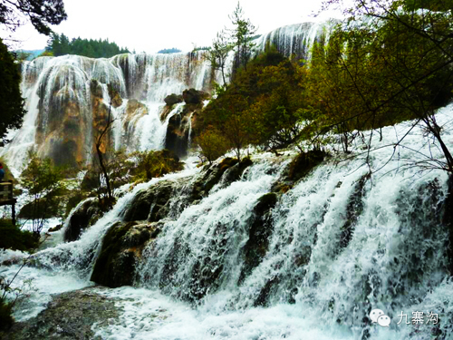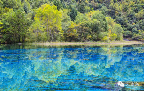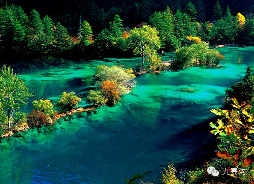 九寨沟的水,似纤尘不染的少女双眸,清澈,纯美,没有一丝丝杂质。湖、泉、瀑、河、滩连缀一体,飞动与静谧结合,刚烈与温柔相济,千颜万色,多彩多姿。那高原湖泊的水色本是历经千年凝聚而成,晶莹如玉,透明如冰。