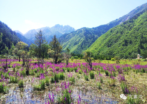 九寨沟是一幅画:不仅有山,有花,而且有湛蓝如洗的蓝天,有白雪皑皑的山峰;不仅有欢叫的小鸟,各种叫不出名字、生长在高原的树木,而且还有无数条欢唱流趟的山泉、无数处彩池、无数处海子、无数棵倒在碧蓝海子中间形态各异、多年不腐的古树,以及还有无数个遗落在九寨沟山水中的灵魂……